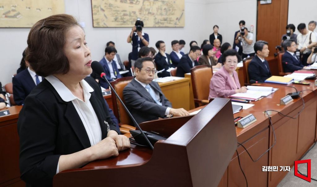 손효숙 리박스쿨 대표가 10일 국회 교육위원회에서 열린 리박스쿨 청문회에서 질의에 답변하고 있다.