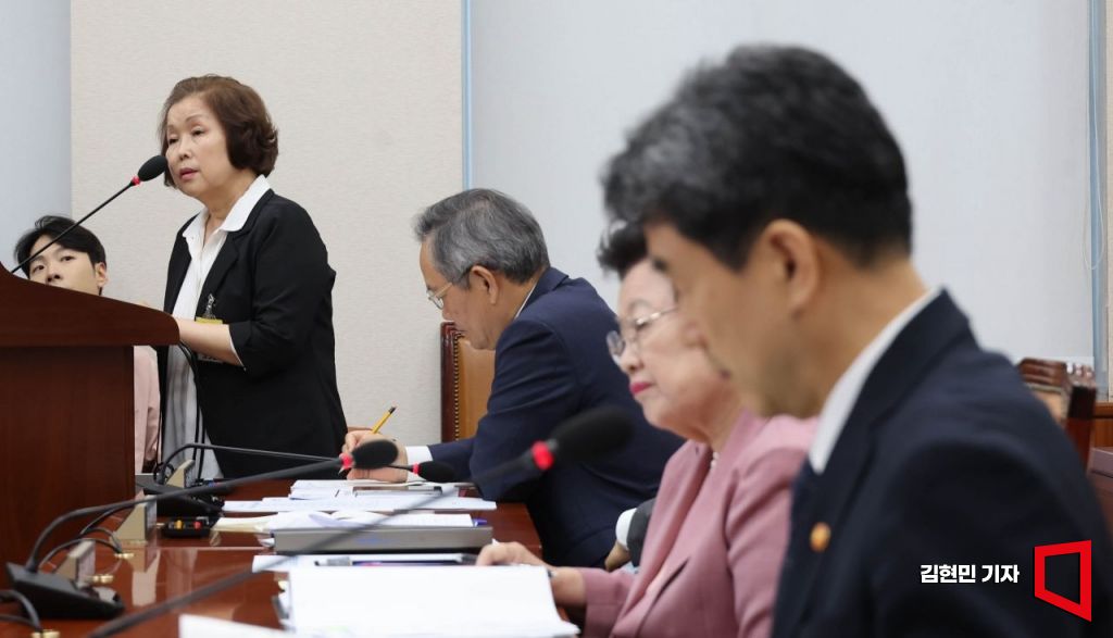 손효숙 리박스쿨 대표가 10일 국회 교육위원회에서 열린 리박스쿨 청문회에서 질의에 답변하고 있다.