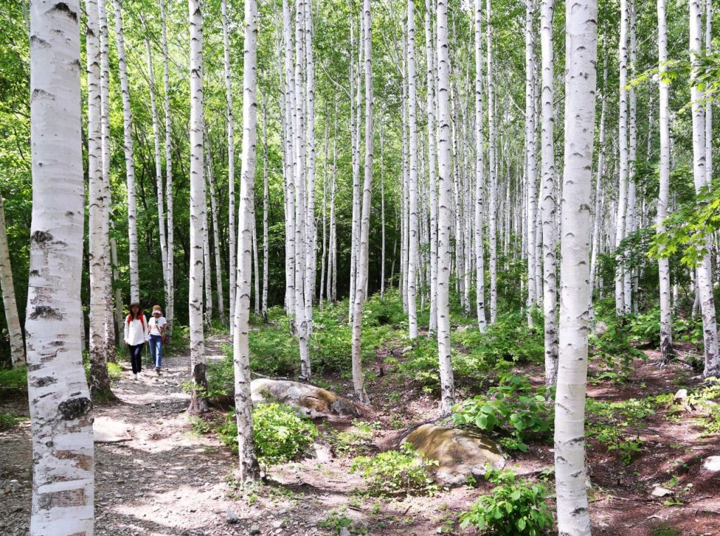 온통 하얗던 겨울 자작나무 숲과 다르게 여름이면 하얀 줄기와 녹음의 조화가 절정을 이룬다.