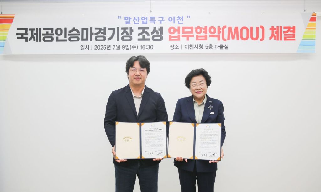 이천시는 9일 농업회사법인 잭큐몬티㈜와 국제공인 승마경기장 조성을 위한 300억원 규모의 민자유치 업무협약(MOU)을 맺었다고 10일 밝혔다.