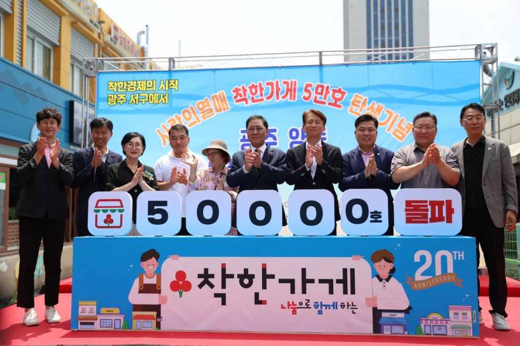 행사는 광주 1호 '착한시장·착한거리' 선포식과 양동시장 내 17곳 점포의 착한가게 단체 가입식, 전국 5만호 착한가게 가입식·기념 퍼포먼스 등이 함께 진행됐다.