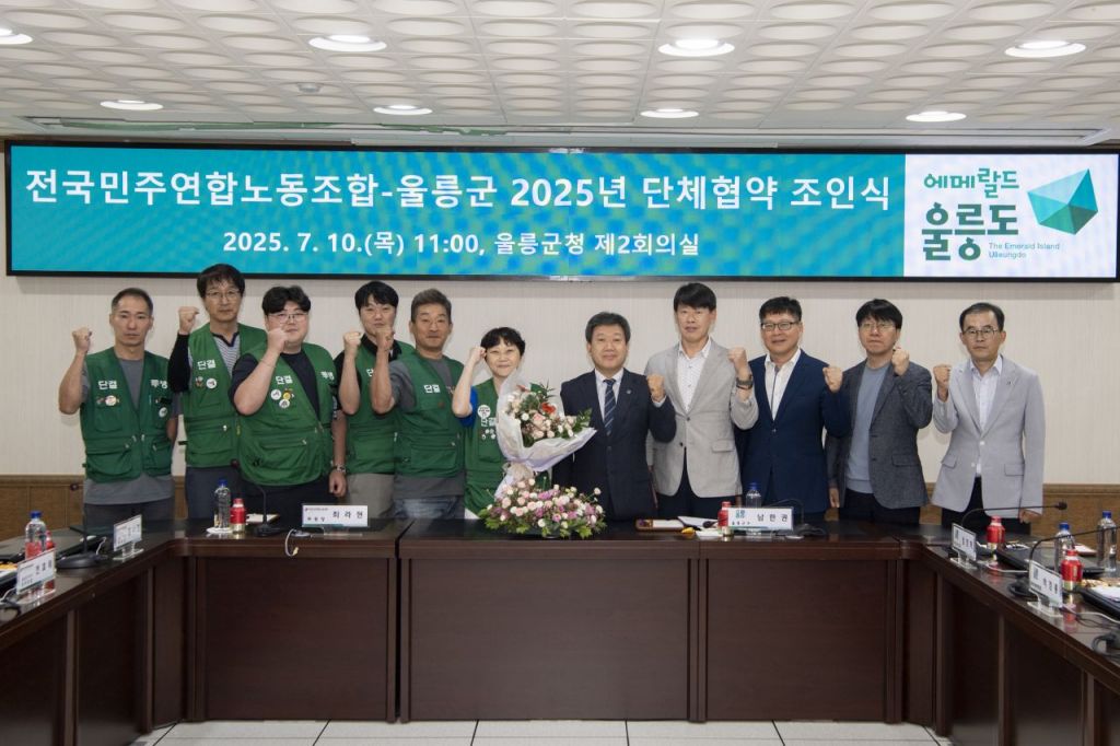 경북 울릉군과 전국민주연합노동조합은 10일 울릉군청에서 '2025년 단체협약 조인식'을 열고, 단체협약을 체결했다.