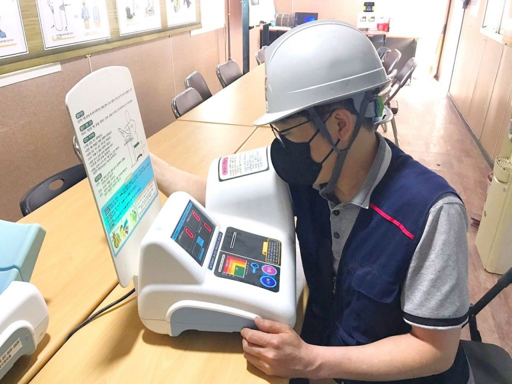 부영 아파트 공사 현장에서 근로자가 건강 체크를 하고 있다. 부영그룹 제공