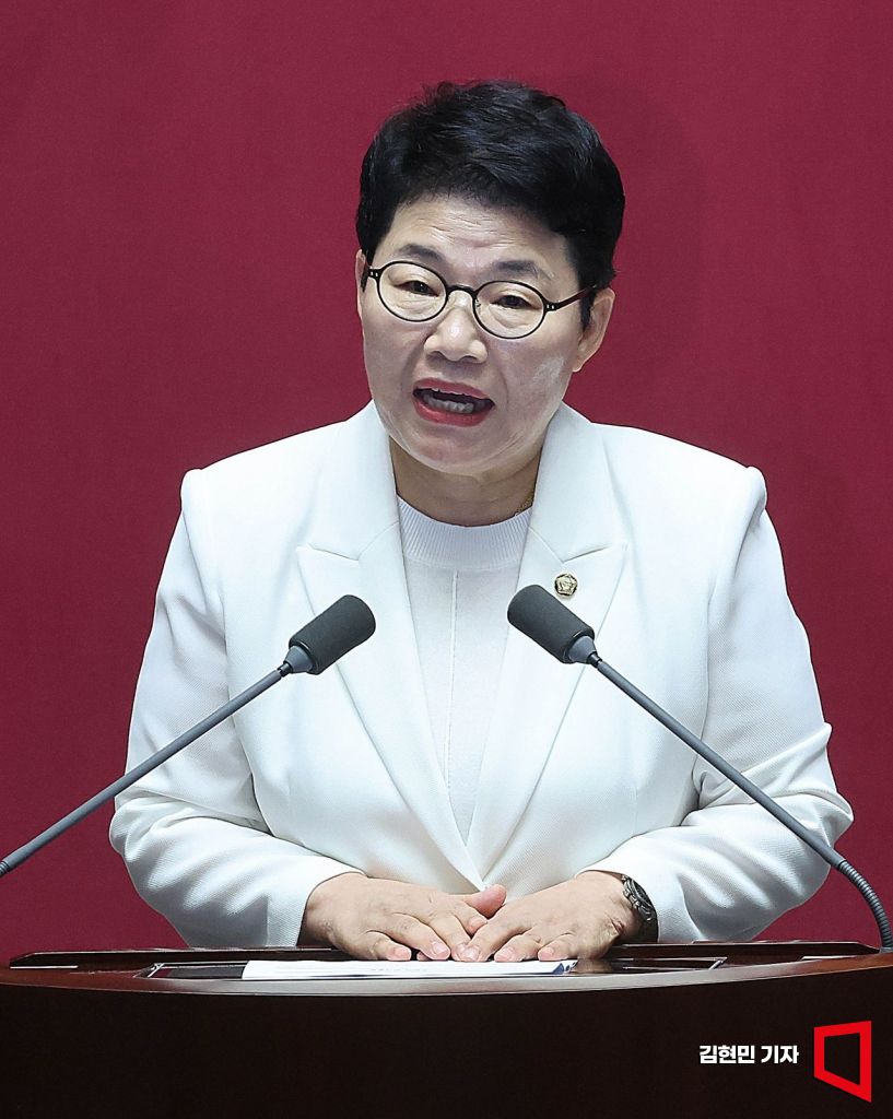 10일 국회 본회의에서 기획재정위원장으로 선출된 임이자 국민의힘 의원이 당선인사를 하고 있다.