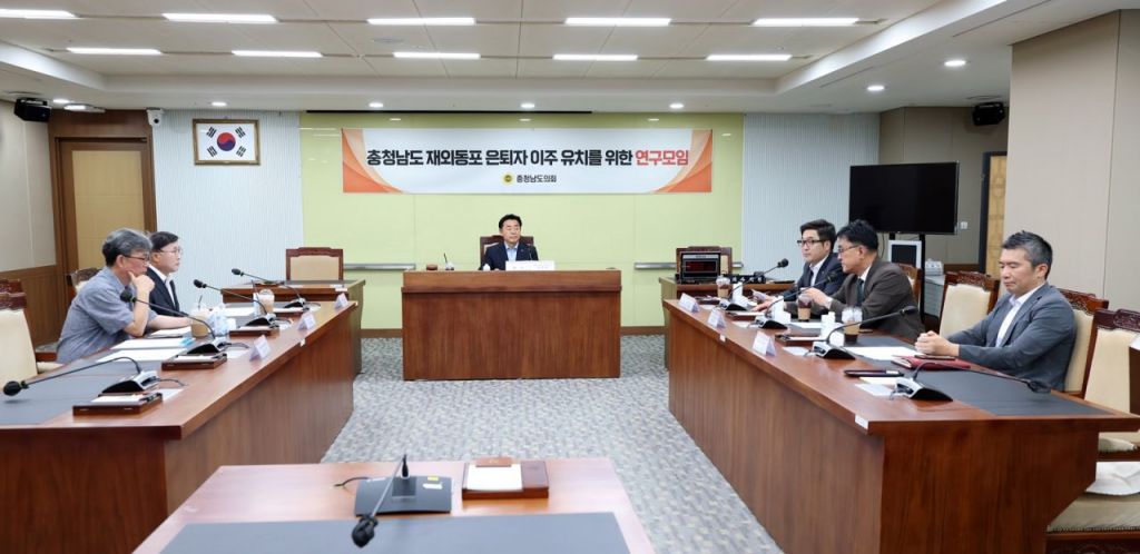 충남도의회는 재외동포 은퇴자 유치를 통해 인구 유입과 지역발전을 도모하는데 적극적으로 나서고 있다. 도 의회 재외동포 은퇴자 이주 유치를 위한 연구모임은 10일 발족식을 갖고 본격적인 활동에 돌입했다. 이 연구모임은 충남도에서 추진 중인 재외동포 은퇴자 이주 유치 사업을 성공적으로 이끌기 위한 목적으로 발족한 것.