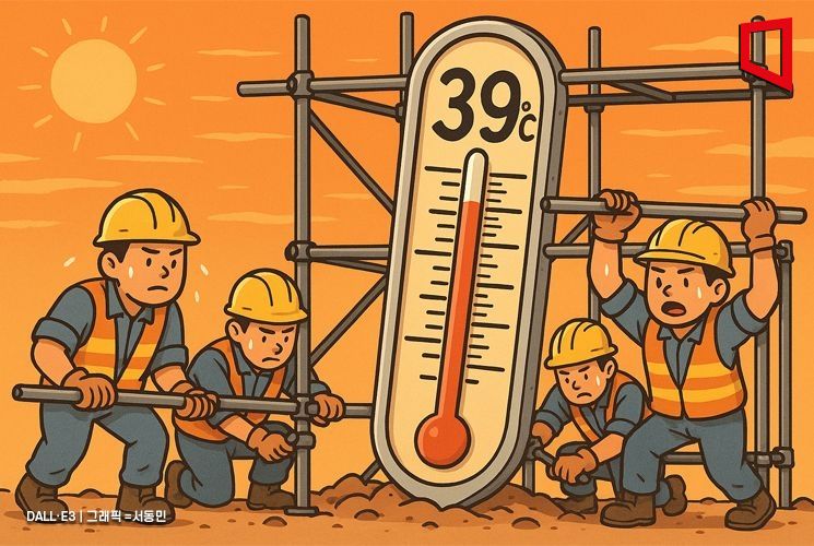 온도계는 어느새 39도를 가리켰다. 안전모 아래로 삐져나온 머리칼은 땀에 찰싹 붙었고, 피부는 소금기 어린 땀으로 뒤덮였다. 인부들은 쉼터에서 퍼온 얼음물로 갈증을 달랬지만 그 얼음조차 오래 버티지 못했다. 쉼터의 물통엔 얼음이 절반쯤 녹아 있었고, 컵을 채운 뒤 벌컥벌컥 들이켜도 갈증은 쉽게 가시지 않았다. 40대 최모씨는 "땀이 눈에 들어가서 눈을 뜰 수가 없다"며 "퇴근길엔 소금기로 눈이 따가워 흐르는 물로 씻어야 잠이 온다"고 했다.