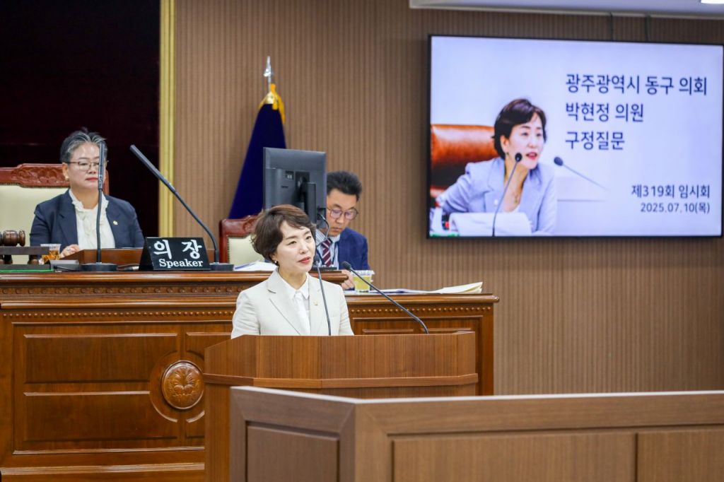 10일 광주 동구의회에서 열린 제319회 임시회 제3차 본회의에서 박현정 동구의원이 구정질문하고 있다. 광주 동구의회 제공