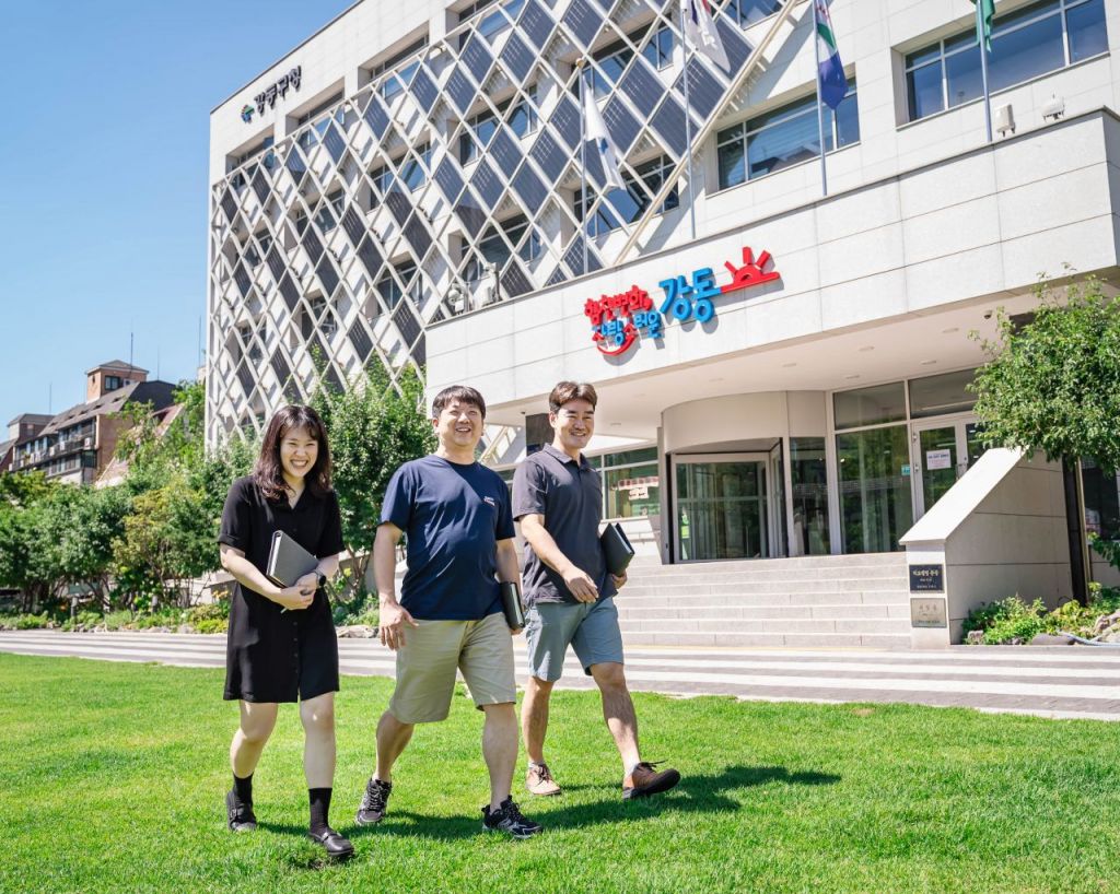 강동구 공무원들이 반바지 차림으로 구청 앞을 걷고 있다. 강동구 제공.