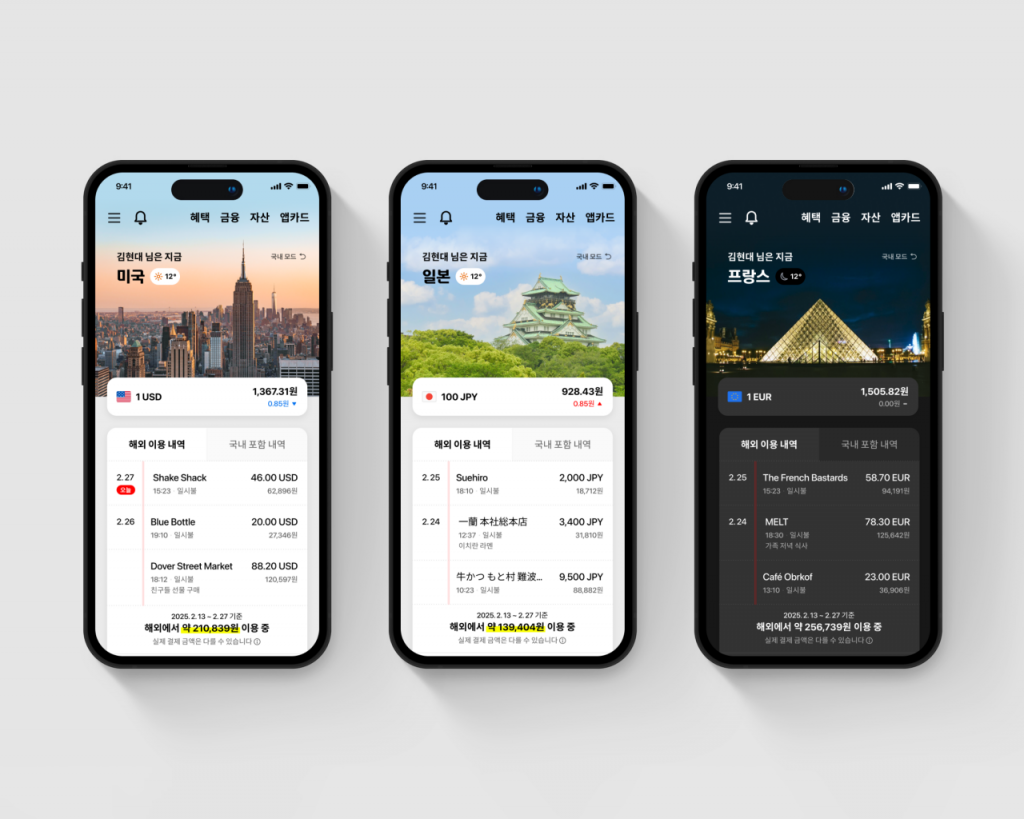 국가별 제휴 서비스도 한 눈에 확인할 수 있다. 미국에서는 뉴욕현대미술관 무료 입장과 하와이 올로마나 골프장 할인 혜택, 일본에서는 츠타야 서점과 돈키호테 등 일본 제휴 서비스, 대만에서는 라인페이 결제, 프랑스에서는 몽쥬약국 할인 등이 노출된다.