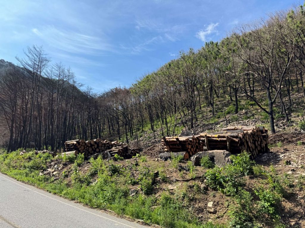 경북 산불 피해지에서 수확한 피해목이 집재돼 있다. 산림청 제공