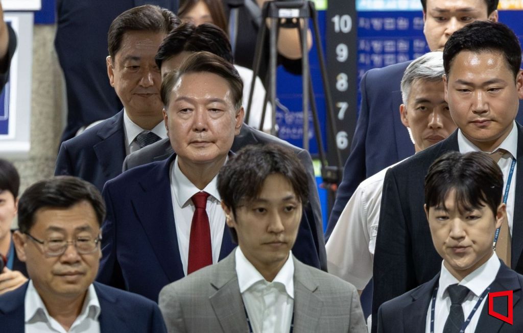윤석열 전 대통령이 지난 9일 서울 서초구 서울중앙지방법원에서 열린 2차 구속 전 피의자 심문(영장실질심사)을 마친 뒤 서울구치소로 향하고 있다. 사진공동취재단