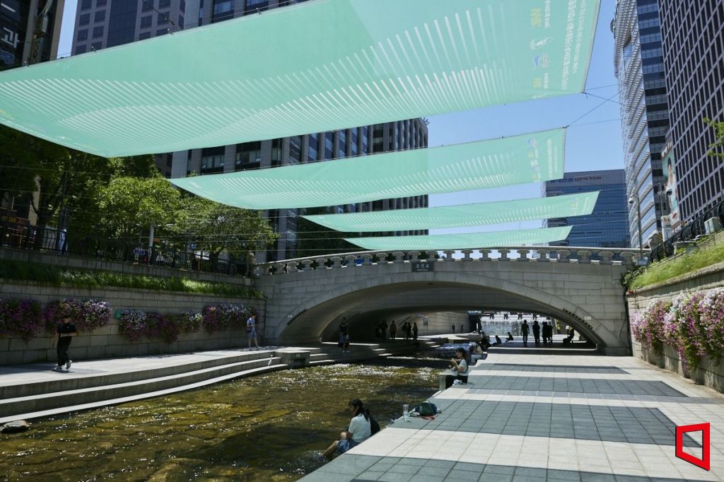그룹 CI(기업이미지) 색상인 시원한 청록색 컬러로 제작된 대형 그늘막은 청계천 시점부인 모전교부터 광통교까지 약 50m 구간에 설치됐다. 그늘막은 9월까지 운영되며, 사용된 원단은 가방이나 파우치 등 업사이클링 제품으로 활용될 계획이다.