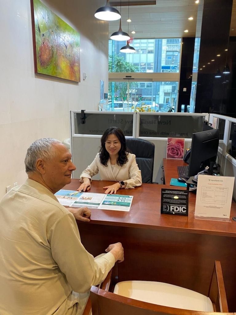 ▲ 하나 USA의 한 지점에서 손님이 상담을 받고 있는 모습. 하나금융그룹 제공.