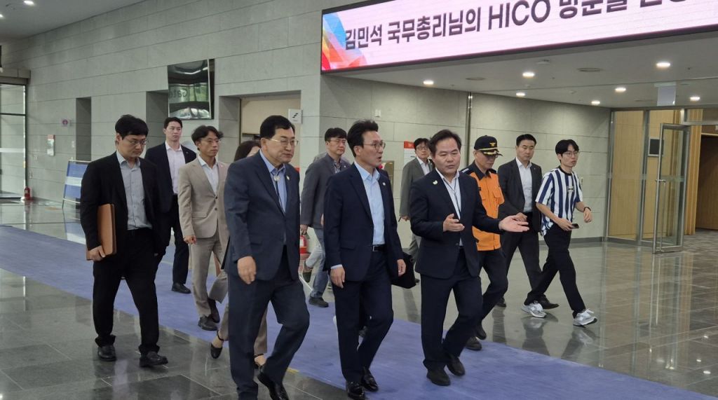 김학홍 경북도 행정부지사(오른쪽)가 경주를 방문한 김민석 국무총리(중앙)를 수행하면서 경주 APEC 준비상황을 보고하면서 특별교부세 250억원 지원 등을 요청하고 있다.