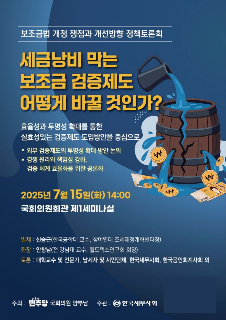 세금 누수를 막고 보조금 집행 효율성과 투명성을 높이기 위한 제도적 개선 방안을 논의하는 자리가 마련된다.