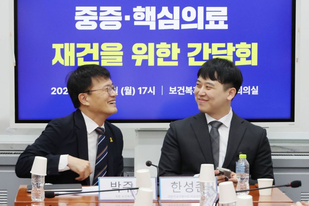 14일 국회 보건복지위원회 소속 민주당·조국혁신당 의원들은 여의도 국회에서 대전협을 만나 중증·핵심의료 재건을 위한 간담회를 진행했다. 박주민 보건복지위원장은 공지를 통해 "비공개로 전환된 간담회에서는 중증 의료 현장에 대한 현장의 어려움이나 제도적 개선에 대한 정책 이야기를 주로 다뤘다"며 이렇게 전했다.