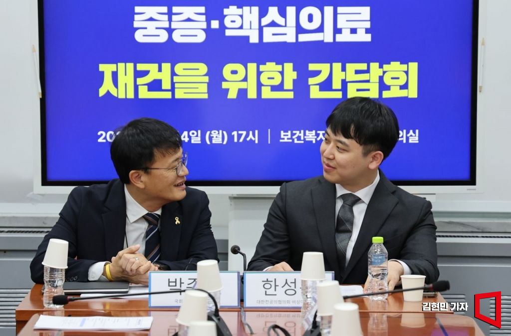 15일 의료계에 따르면, 전날 국회 보건복지위원회 소회의실에서 열린 '중증·핵심의료 재건을 위한 간담회'에서 박주민 국회 보건복지위원장 등 여당 의원들과 한성존 대한전공의협의회(대전협) 비상대책위원장 등 사직 전공의들이 마주 앉았다.