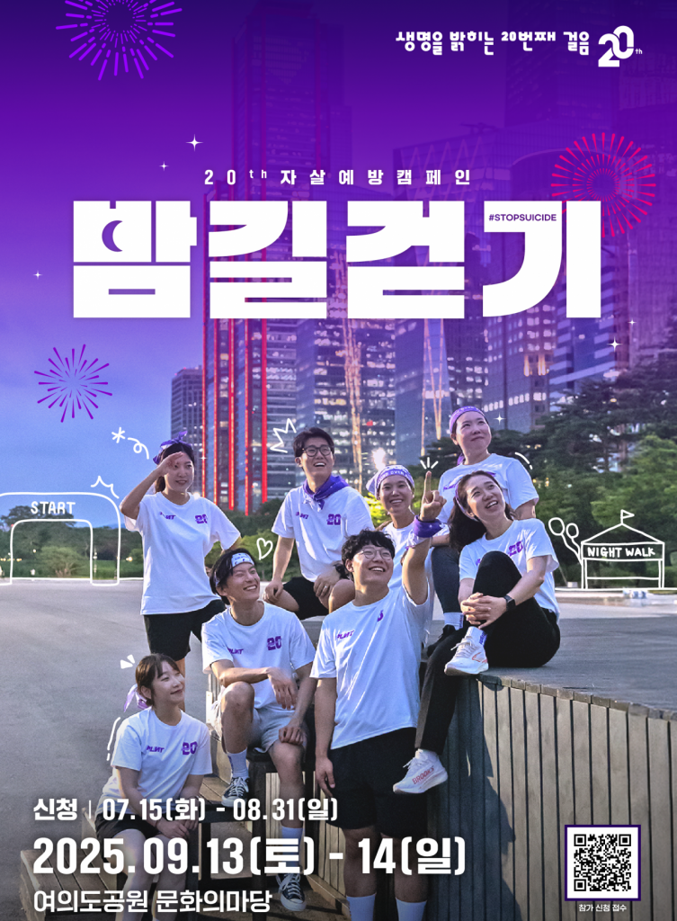 사회복지법인 생명의전화는 대한민국 자살률의 심각성을 알리고, 생명존중문화를 확산하기 위해 2025 자살예방캠페인 '생명사랑 밤길걷기'(이하 '밤길걷기')를 개최한다고 밝혔다.