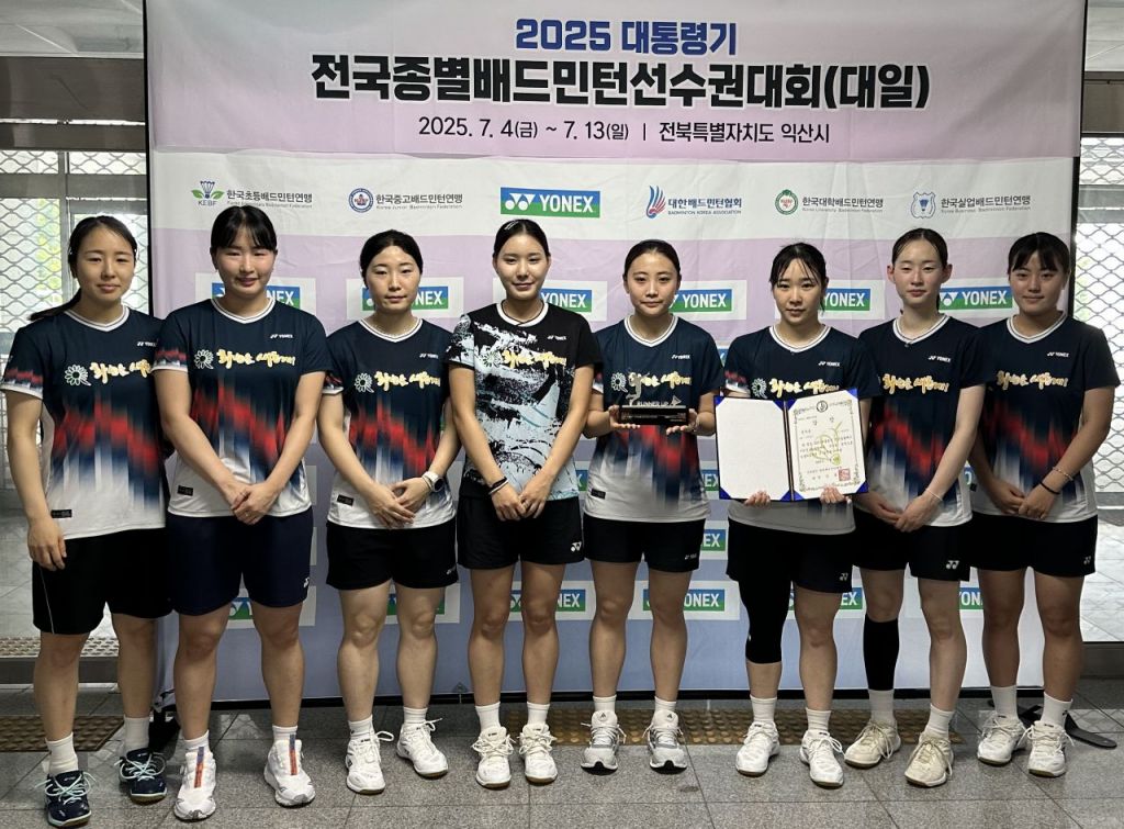 화순군에 따르면 지난 4일부터 13일까지 전북 익산 실내체육관에서 열린 2025 대통령기 전국종별배드민턴선수권대회에서 일반부 혼합 복식 금메달과 여자 단체전 은메달을 목에 걸었다.
