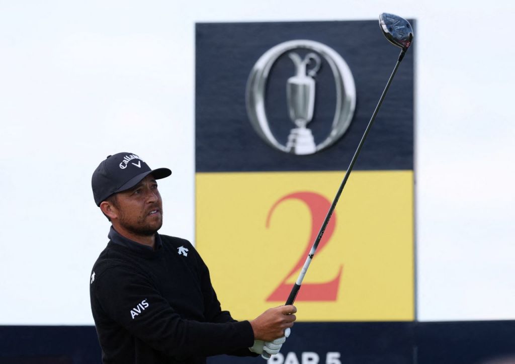 잰더 쇼플리가 153회 디 오픈 연습라운드에서 티샷을 하고 있다. 포트러시(북아일랜드)=로이터연합뉴스