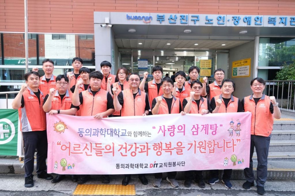 동의과학대학교(총장 김영도) DIT교직원봉사단이 지역 어르신들을 위한 삼계탕 나눔 행사를 펼쳤다.