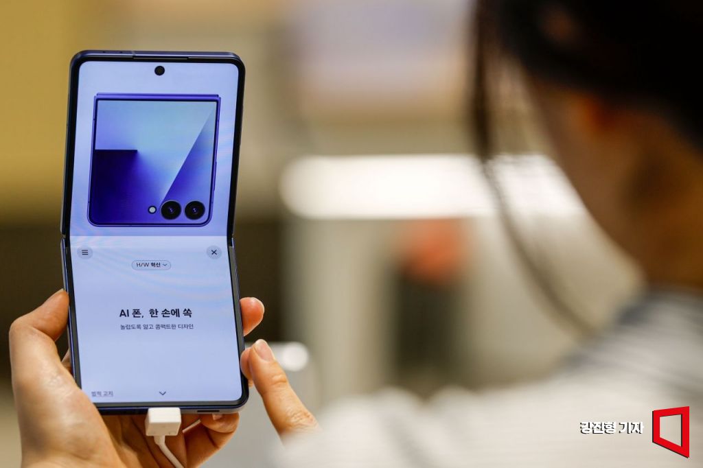 15일 서울 종로구 KT플라자 광화문중앙점을 찾은 고객이 삼성전자 '갤럭시 Z 플립7'을 체험하고 있다. KT는 15일부터 21일까지 전국 KT 매장과 KT닷컴에서 '갤럭시 Z 폴드7'과 '갤럭시 Z 플립7' 사전 예약을 진행한다고 밝혔다.