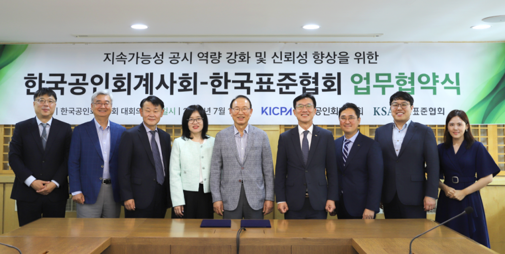 한국공인회계사회는 한국표준협회와 15일 서울 서대문구 한국공인회계사회 대회의실에서 '지속가능성 공시 역량 강화 및 신뢰성 향상을 위한 업무협약'을 체결했다고 밝혔다.