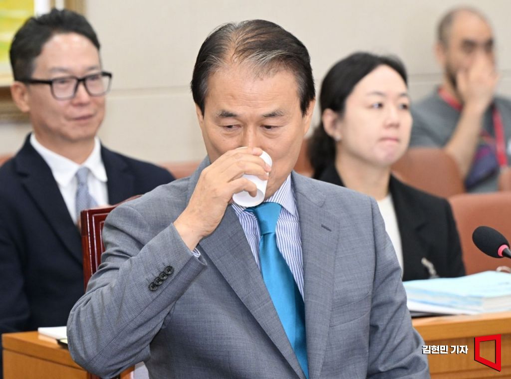 권오을 국가보훈부 장관 후보자가 15일 국회 정무위원회에서 열린 인사청문회에서 물을 마시고 있다. 김현민 기자