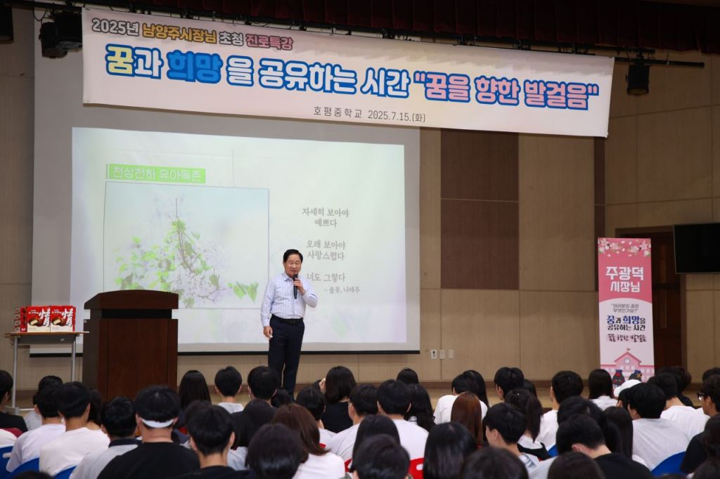 남양주시는 15일 호평중학교에서 3학년 학생 241명을 대상으로 '꿈을 향한 발걸음'이라는 주제로 진로 특강을 개최했다.