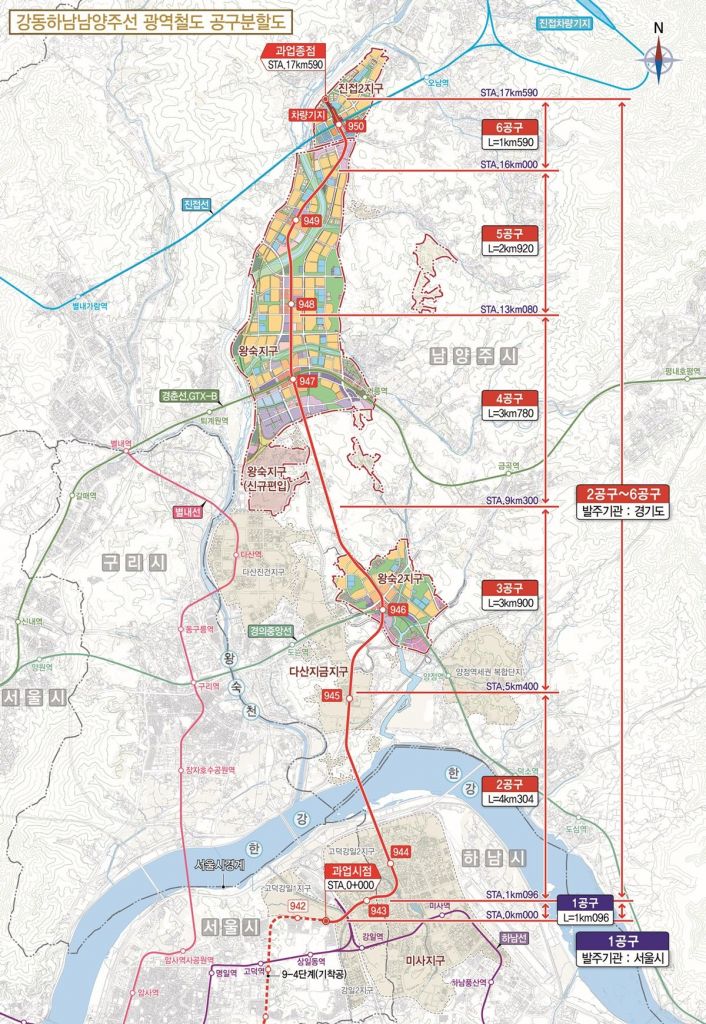 경기도는 남양주시 진접지구와 서울시 강동구를 잇는 지하철 9호선 연장 강동하남남양주선 광역철도(2~6공구) 사업을 16일 조달청에 계약 의뢰했다고 밝혔다.