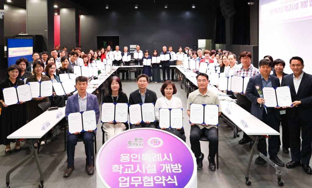 용인시는 용인교육지원청 및 관내 118개 초·중·고등학교와 학교시설 개방을 위한 업무협약을 체결했다고 밝혔다. 이번 협약으로 용인지역에서 체육시설을 개방하는 학교는 152곳으로 늘었다고 시는 설명했다.