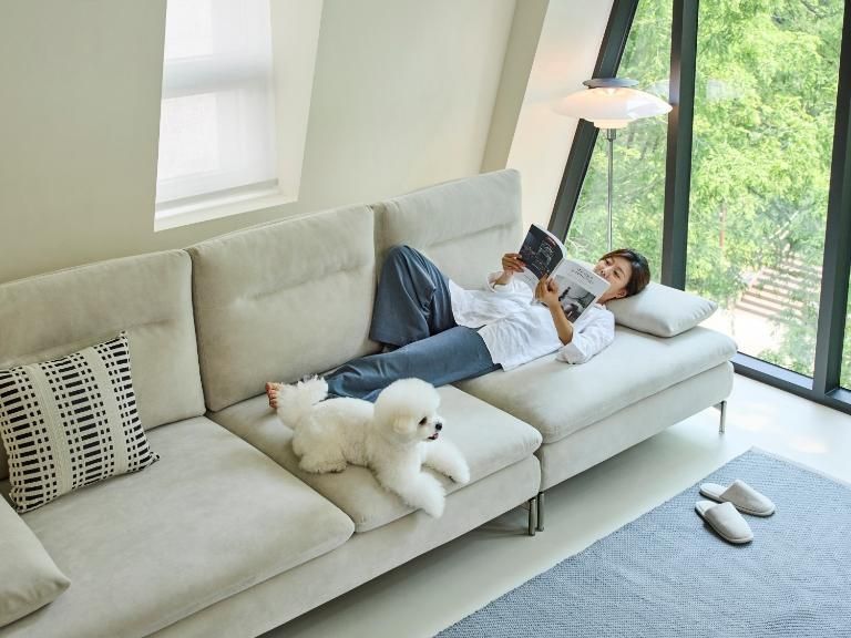 스위브 스윙은 등받이와 팔걸이를 자유롭게 움직일 수 있는 제로월(Zero-wall) 스윙 기능을 적용해 공간 효율성과 착석 편의성을 모두 높인 제품이다. 좌방석 깊이가 동급 타사 소파 대비 약 4㎝ 넓어 아이와 함께 앉거나 양반다리 자세를 취할 때도 여유롭고 안정적인 착석감을 제공한다. 팔걸이 역시 양쪽 모두 스윙 기능이 적용돼 최대 20㎝까지 확장 가능하다.