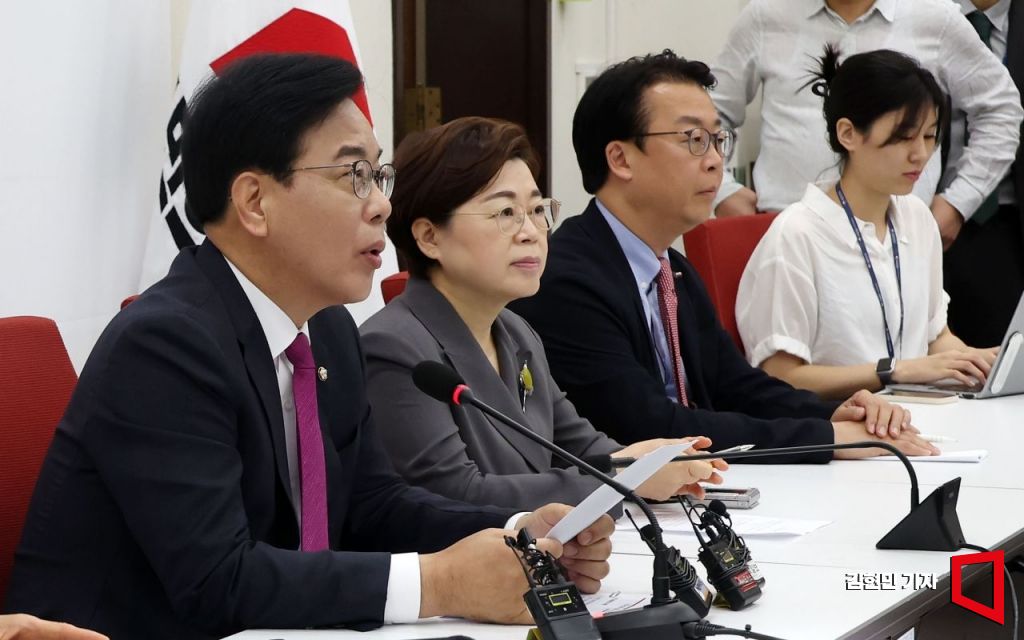 송언석 국민의힘 비대위원장 겸 원내대표가 16일 국회에서 기자간담회를 열어 이진숙 교육부 장관 후보자의 사퇴를 요구하는 등 인사청문회 관련 입장을 밝히고 있다.