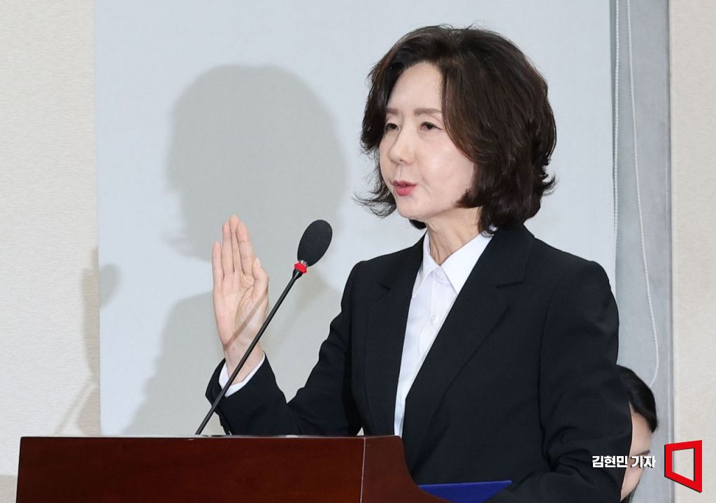 이진숙 사회부총리 겸 교육부 장관 후보자가 16일 국회 교육위원회에서 열린 인사청문회에서 선서하고 있다. 2025.7.16 김현민 기자