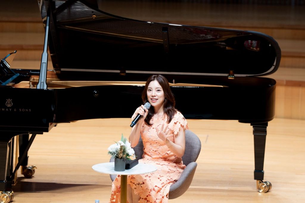 소프라노 황수미가 16일 롯데콘서트홀에서 열린 기자간담회에서 하반기 롯데콘서트홀 마티네 콘서트에 대해 설명하고 있다. [사진 제공= 롯데콘서트홀]