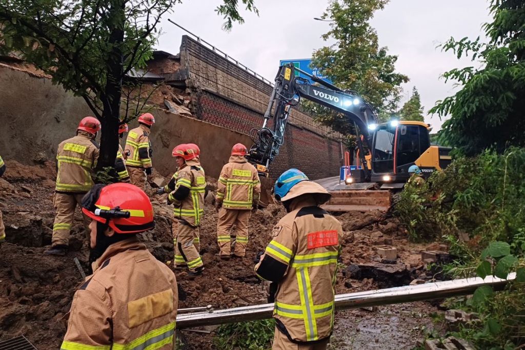 소방과 경찰은 옹벽 붕괴 원인과 차량 탑승자 유무 등을 조사 중이다.