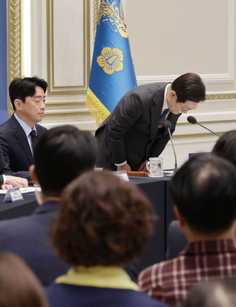 이 대통령은 세월호·이태원·무안 여객기·오송 지하차도 참사 희생자 유족 207명을 청와대 영빈관으로 초청해 공식적으로 정부를 대표해 사죄의 말씀을 드린다며 고개 숙여 사과했다.