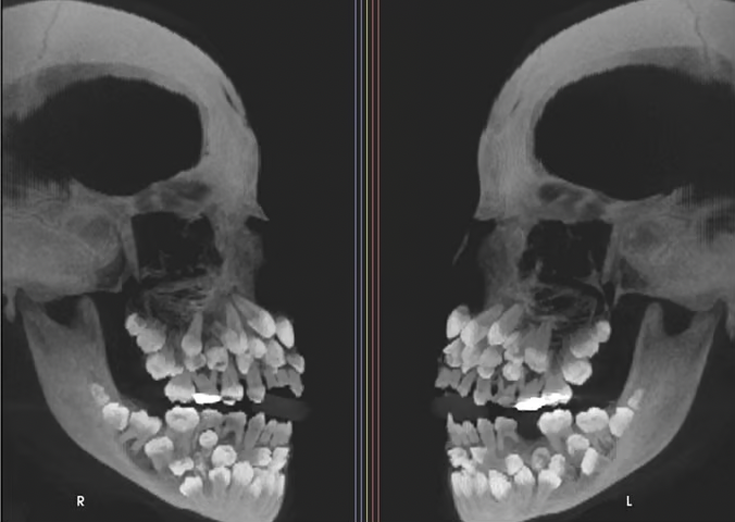 연구팀은 정밀 영상 검사를 통해 치아의 정확한 위치를 파악하고 유전 질환과 연관된 것은 아닌지 확인하기 위해 관련 유전자 검사도 함께 진행했다. 보통 다발성 과잉치는 쇄골두개이형성증, 가드너 증후군, 구개열 등을 동반하는 경우가 많지만, 검사 결과 소녀는 이 질환들에 해당하지 않았다.