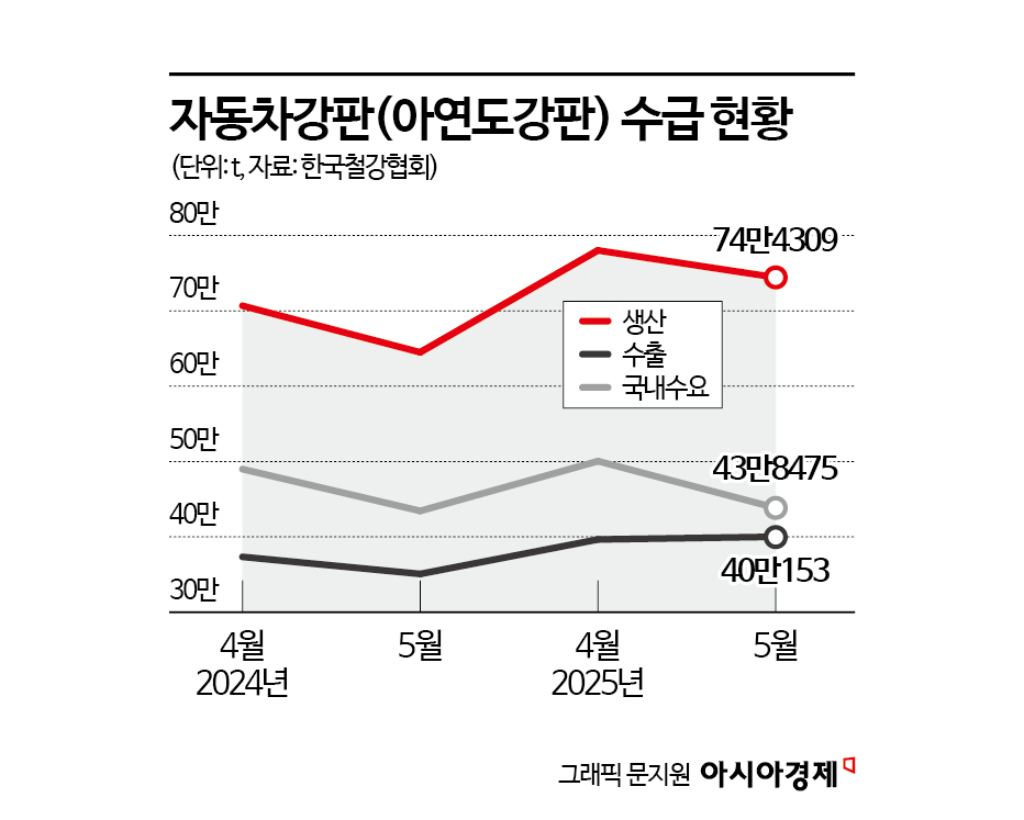 당초 철강업계는 미국발 관세 영향으로 자동차강판 수요가 감소할 것으로 내다봤다. 올해 초까지만 해도 글로벌 완성차 판매가 둔화되는 조짐을 보이고, 미국이 자동차에 25% 관세를 부과하면서 수출과 생산 타격을 우려한 것이다. 그러나 4~5월 수치는 이런 예상을 뒤집었다.