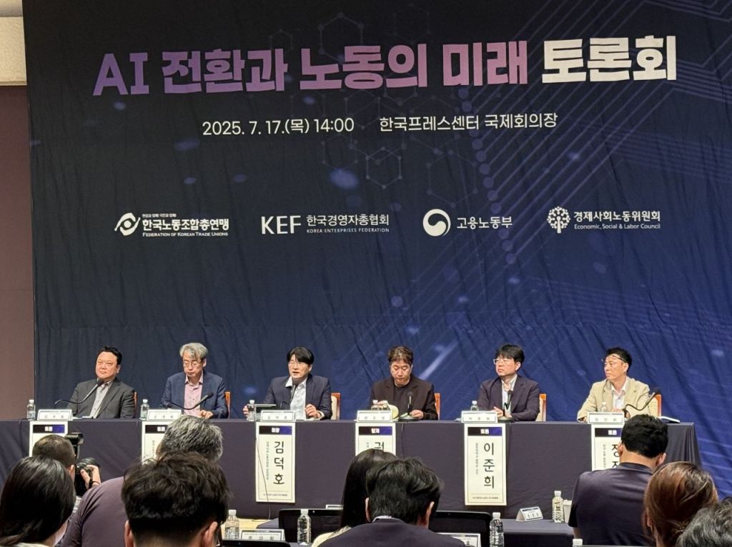 새 정부 출범 이후 처음으로 노사정 대표자들이 만난 토론회 주제는 '인공지능(AI)'이었다. AI 시대 도래로 노동 시장과 고용 환경 변화가 큰 만큼 대응하는 데 있어 노사정 협력이 필수라는 논의가 나왔다. 대통령 직속 사회적대화 기구인 경제사회노동위원회는 AI 노동 정책을 꾸리는 과정에서 필요한 논의 주제를 담은 녹서(綠書)를 오는 10월에 선보일 예정이다.