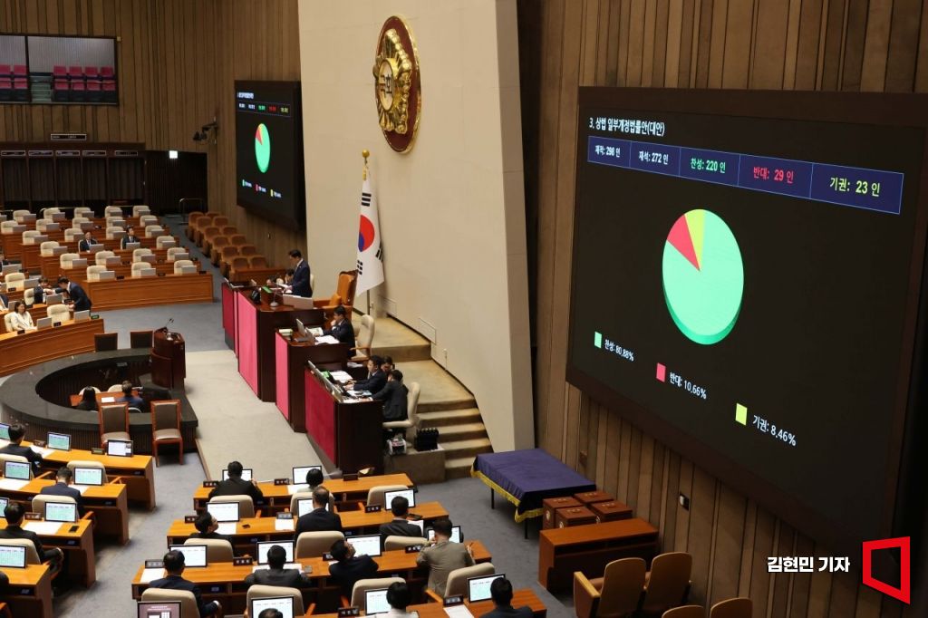 3일 국회 본회의에서 상법 일부개정법률안이 통과되고 있다. 2025.7.3 김현민 기자