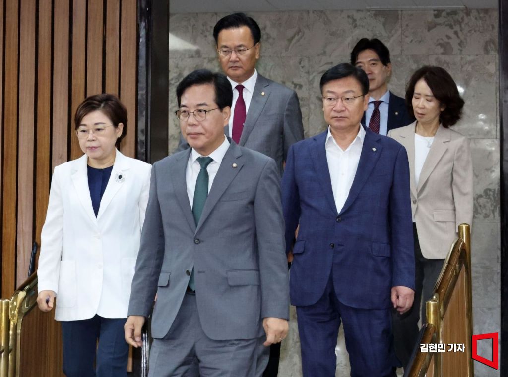 송언석 국민의힘 비상대책위원장 겸 원내대표가 18일 국회에서 열린 원내대책회의에 참석하고 있다.