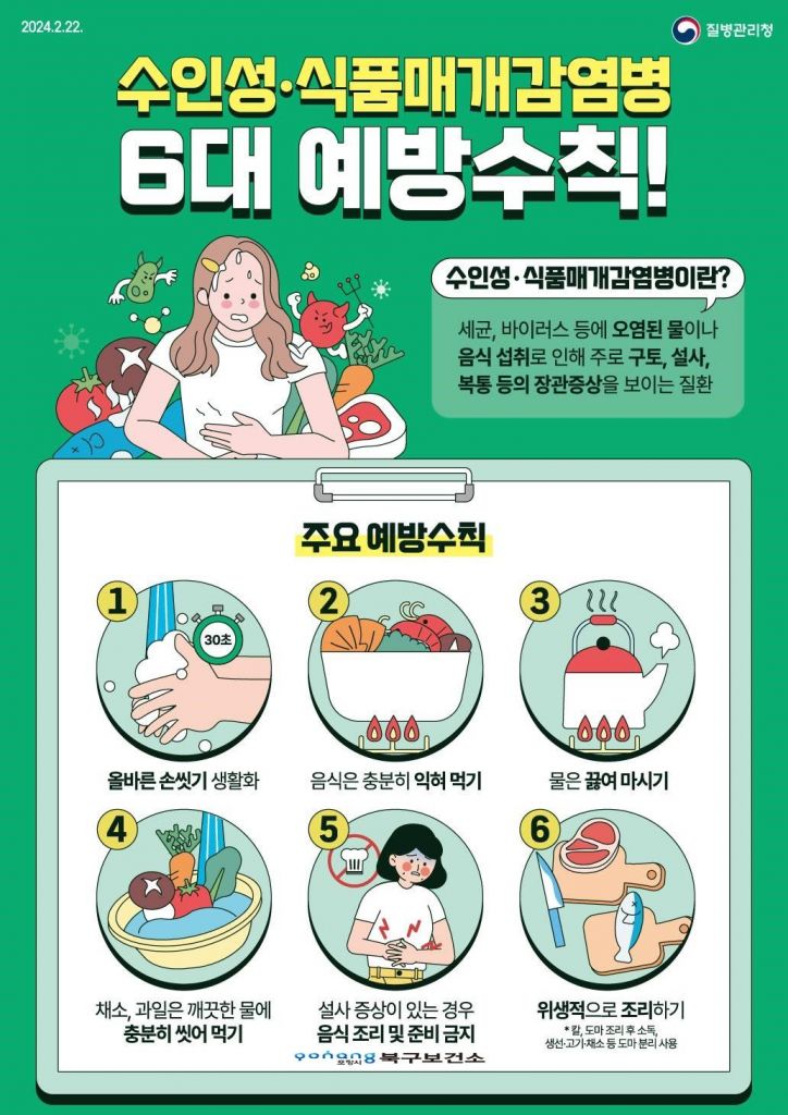 수인성·식품매개감염병 6대 예방수칙 안내문.