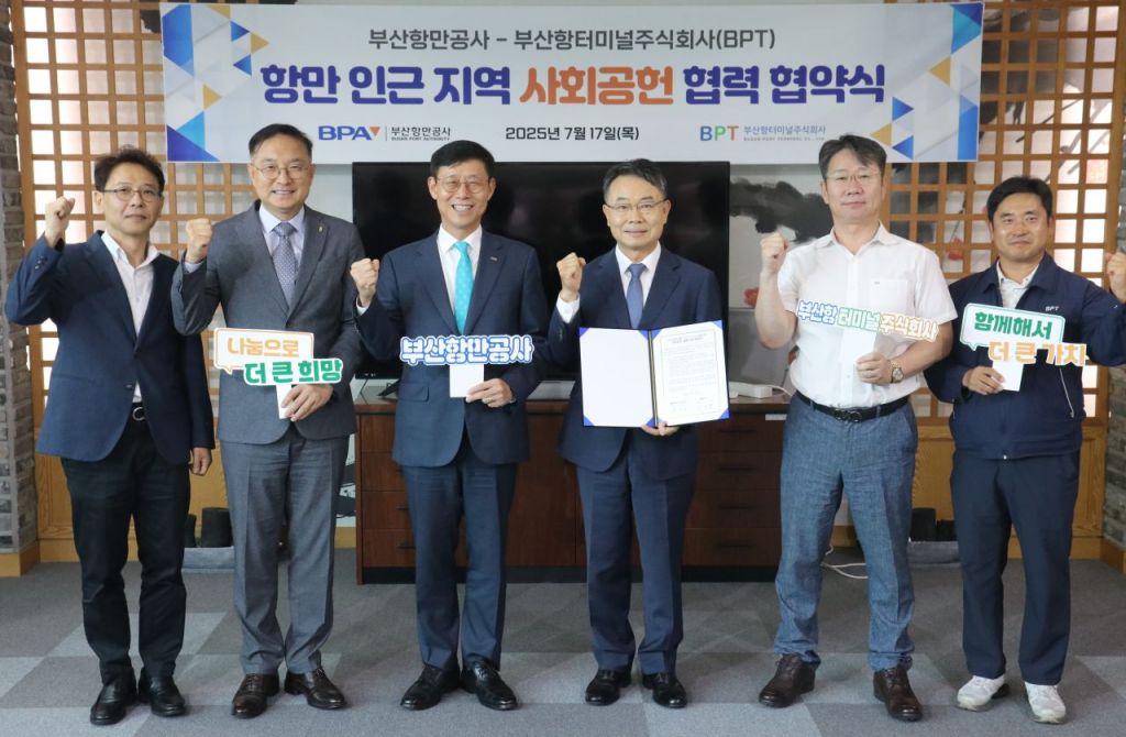 부산항만공사(BPA, 사장 송상근)가 17일 부산항터미널주식회사(BPT, 대표이사 이정행)와 사회공헌 협력 강화를 위한 업무협약을 체결했다.