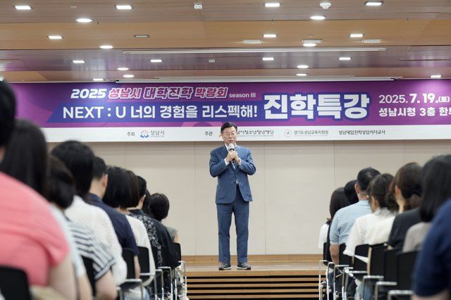 신상진 성남시장이 19일 성남시청에서 열린 '2025년 성남시 대학 진로박람회'에 참석해 진로를 고민하는 수험생들을 직접 격려했다.