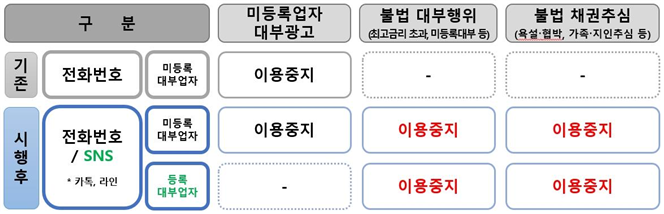 불법 사금융업자가 소비자에게 불법 채권추심, 대부행위를 한 것이 확인되면 업자 전화 이용을 중지시킨다. 카카오톡, 라인 등 사회관계망서비스(SNS) 계정도 끊는다.