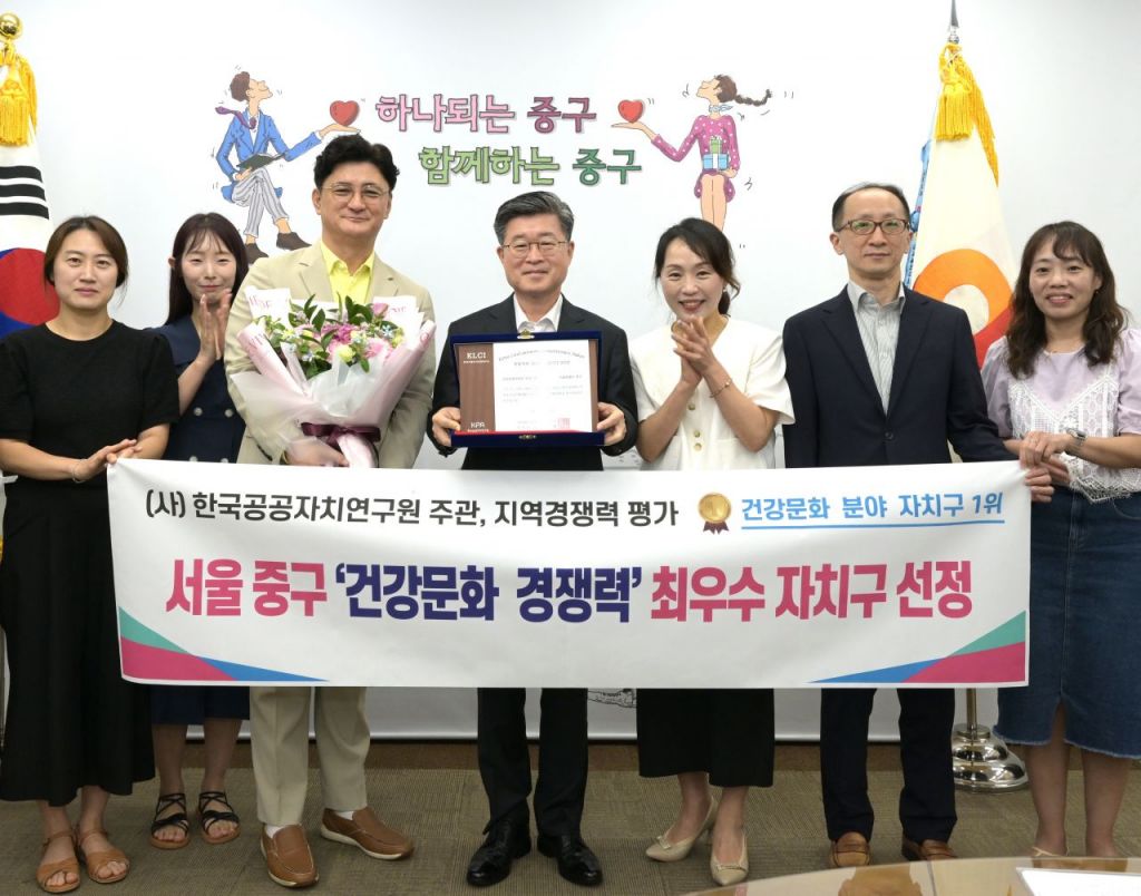 지역경쟁력 평가 건강문화 경쟁력 최우수 자치구 선정. 중구 제공.