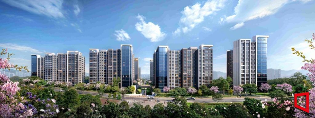 단지 외관은 커튼월 룩과 라운딩 엣지로 표현한 옥탑 구조물 특화 설계를 바탕으로 도시와 자연이 조화롭게 공존하는 건축미를 담았다. 태양을 형상화한 게이트는 데크 상가와 연계해 웅장함을 더했다.