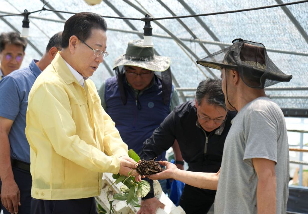김영록 전라남도지사는 20일 담양 봉산면의 딸기 육묘 및 하우스 내부시설 침수 피해 현장을 방문해 피해 농업인을 위로하고, 조속한 복구와 실질적 지원에 온 힘을 쏟을 것을 약속했다.