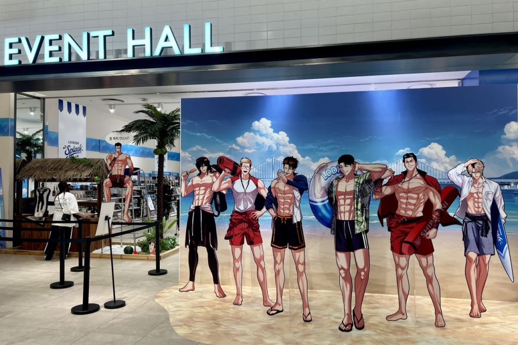 부산을 여행하는 웹툰 주인공들을 콘셉트로, 이달 31일까지 지하 1층 이벤트홀에서 열리는 팝업에서는 인기 캐릭터를 만나고 다양한 굿즈도 구매할 수 있다.